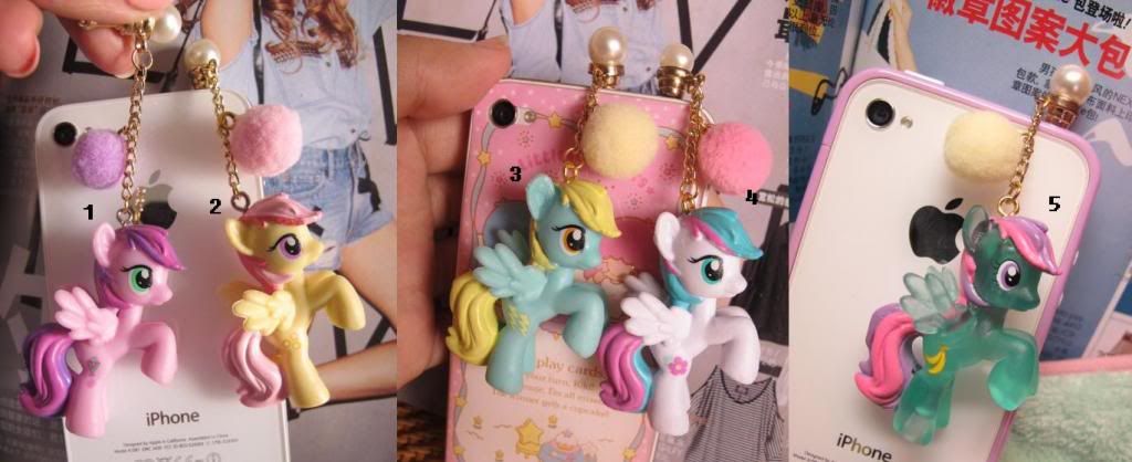 I'M FINALLY BRINGING IT MY LITTLE PONY DUST CAPS!! and whats better... its suitable for all the new iPhone 5 users!! i know that ip5's earphones jack is at a odd place and there's no dust cap that looks nice being upside down... so.. I'VE BROUGHT THESE IN!! :D